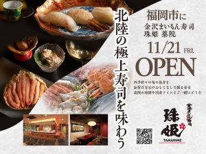 福岡市薬院に「金沢まいもん寿司 珠姫」11/21OPEN!
