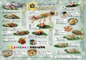 冬の極上ネタが集結!「冬のまいもん」 12月12日(金)より店舗限定で開催! お待たせいたしました! 脂の乗った寒鰤や本ずわい蟹、真鱈白子の...