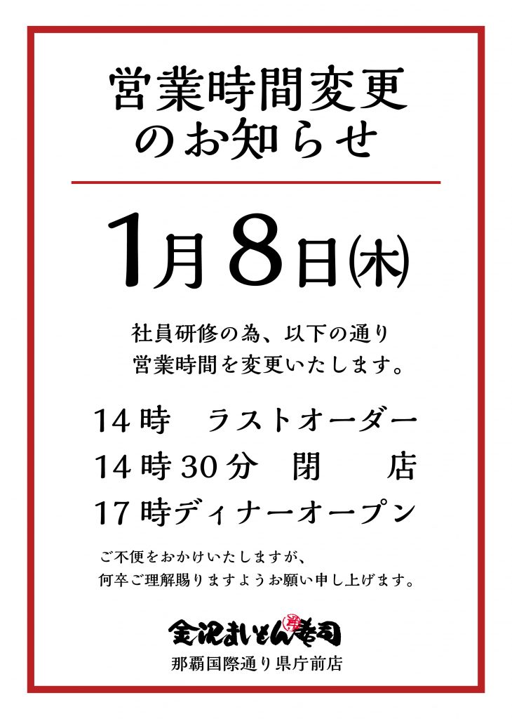 営業時間のお知らせ(那覇国際通り県庁前店)