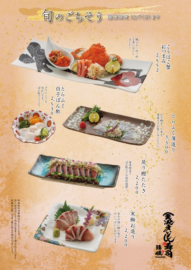 11月11日(火)より「旬のごちそうメニュー」がスタート。