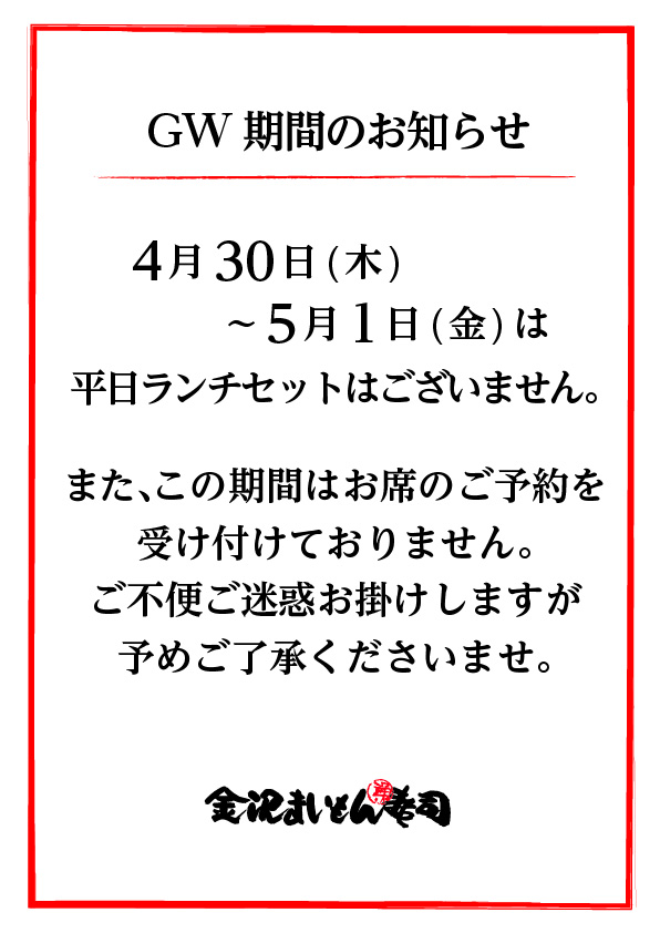4月30日(木)〜5月1日(金)は